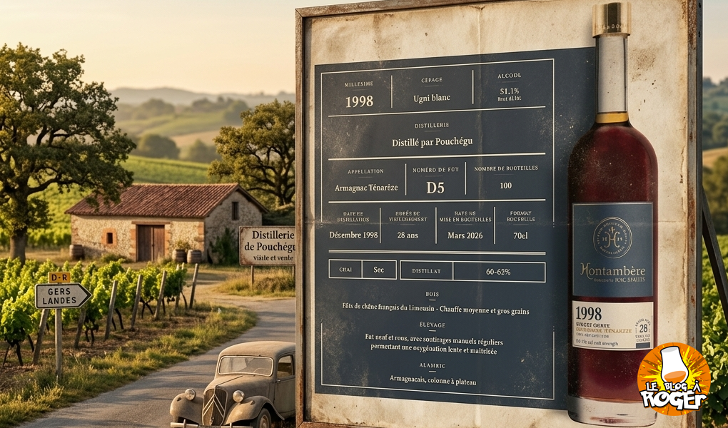 Cet Armagnac Ténarèze, millésimé 1998, est le fruit d’un travail réalisé par le domaine Pouchégu. Sélectionnée avec soin par RAC Spirits, cette cuvée monocépage 100% Ugni blanc a été distillée en décembre 1998 à l’aide d’un alambic armagnacais ambulant à colonne à plateau. Elle a ensuite patiemment vieilli durant 28 Voir plus…